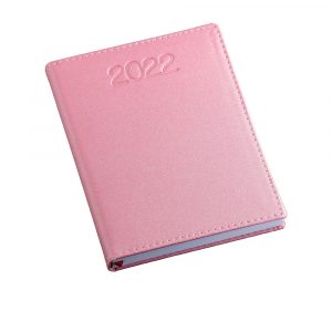 Agenda diária 2022 de couro sintético. Contém fita de cetim marca página, dados pessoais, calendário de 2021 à 2023, mapa do Brasil, mapa-múndi, índice telefônico e planejamento.