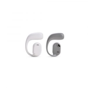 Fones de ouvido sem fio com estrutura em plástico. Possuem formato aberto e ergonômico, permitindo o encaixe nas orelhas sem entrar em contato direto com o canal auditivo. Apresenta conexão via Bluetooth 5.3 que oferece uma transmissão de dados mais estável e com maior qualidade. Acompanha estojo de carregamento com visor de percentual da carga total, além de cabo USB-C para recarga.