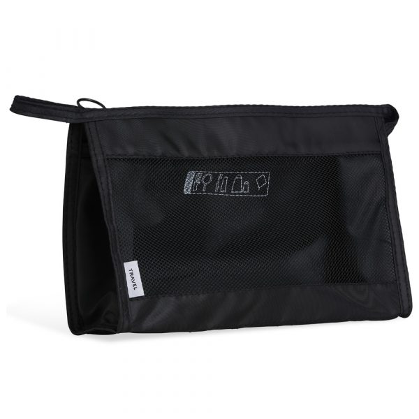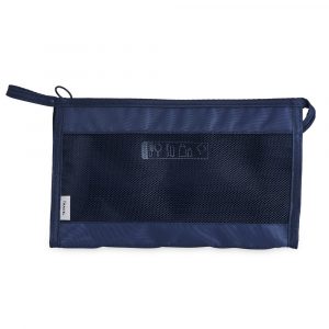 Nécessaire respirável de poliéster com pequeno bolso resistente à água.