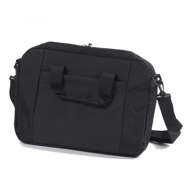 Pasta para notebook 14 polegadas em poliéster, possui dois bolsos com zíper, três compartimentos internos sendo um deles com alça protetora para o notebook.